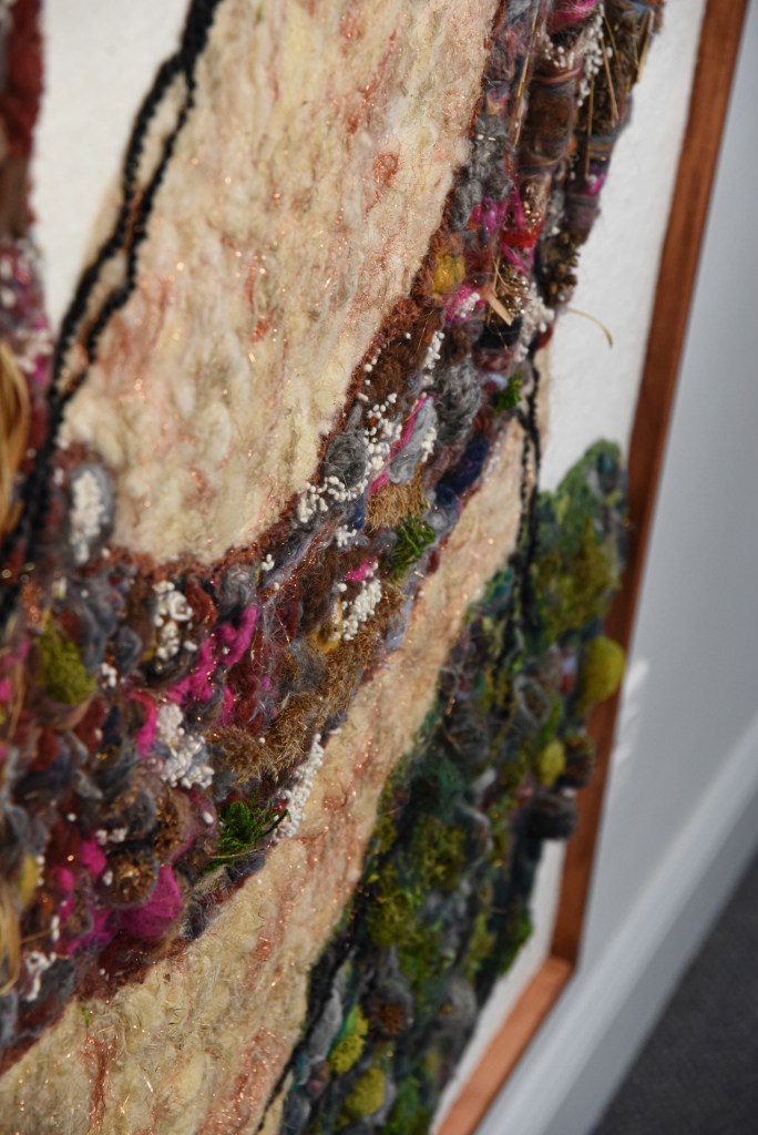 While creating this piece, my cat was under the impression that I was making him a cat bed and proceeded to curl up and nap in the middle of the ‘circle’ each time I pulled it out to work on it.