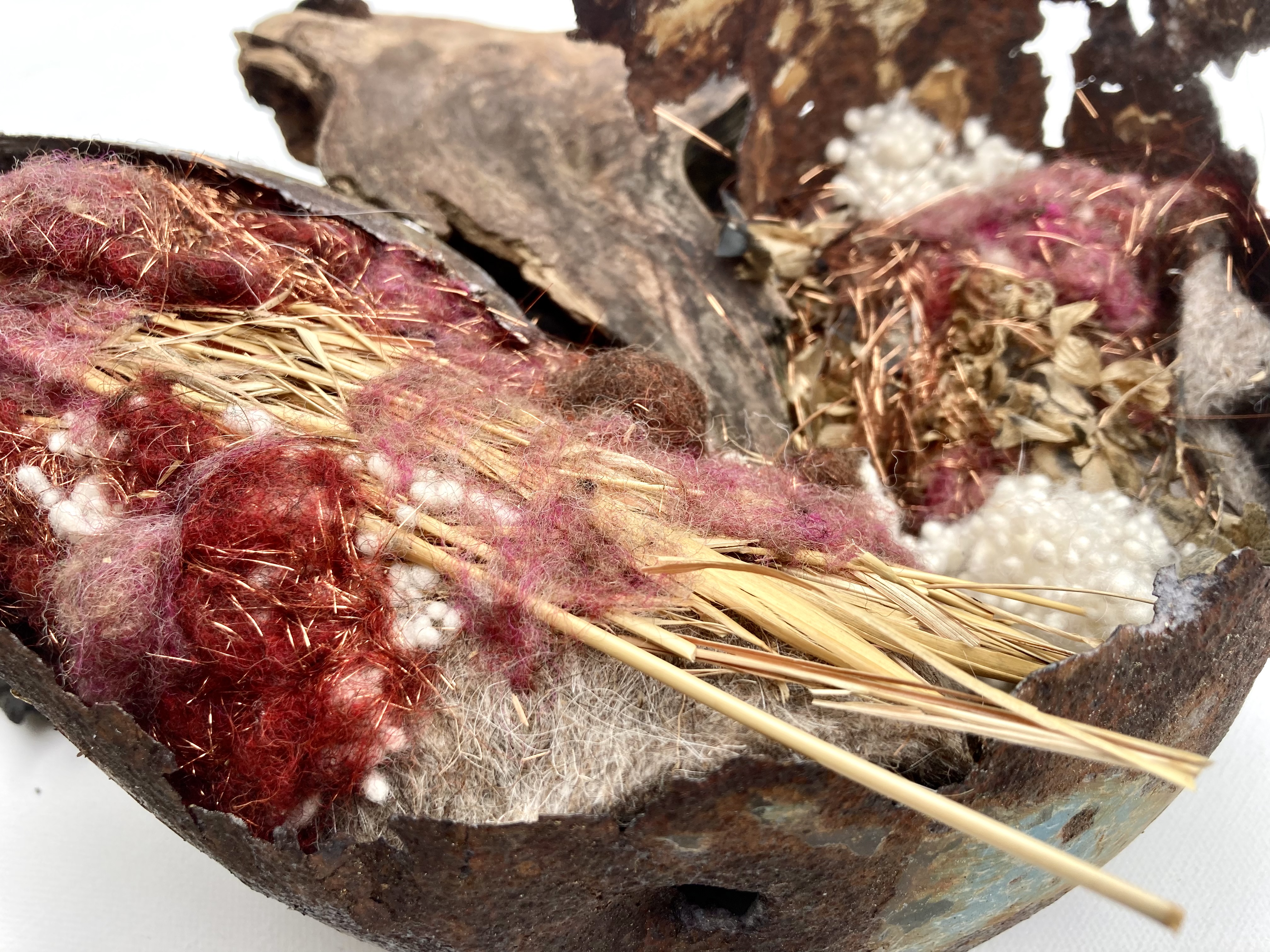 Finding Common Ground Finding Common Ground $275 found objects, foraged natural materials, organic and synthetic fibers 10H x 10W x 5D inches 2021 Click here to Purchase Share this: Share on X (Opens in new window) X Share on Facebook (Opens in new window) Facebook Like Loading...